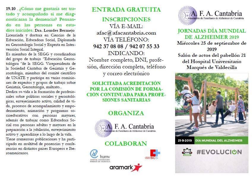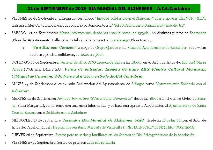 Como todos los años la Asociación de Familiares de Alzheimer de Cantabria ( A.F.A.C) organiza una serie de actividades con motivo del Día Mundial del Alzheimer ( 21 de septiembre)