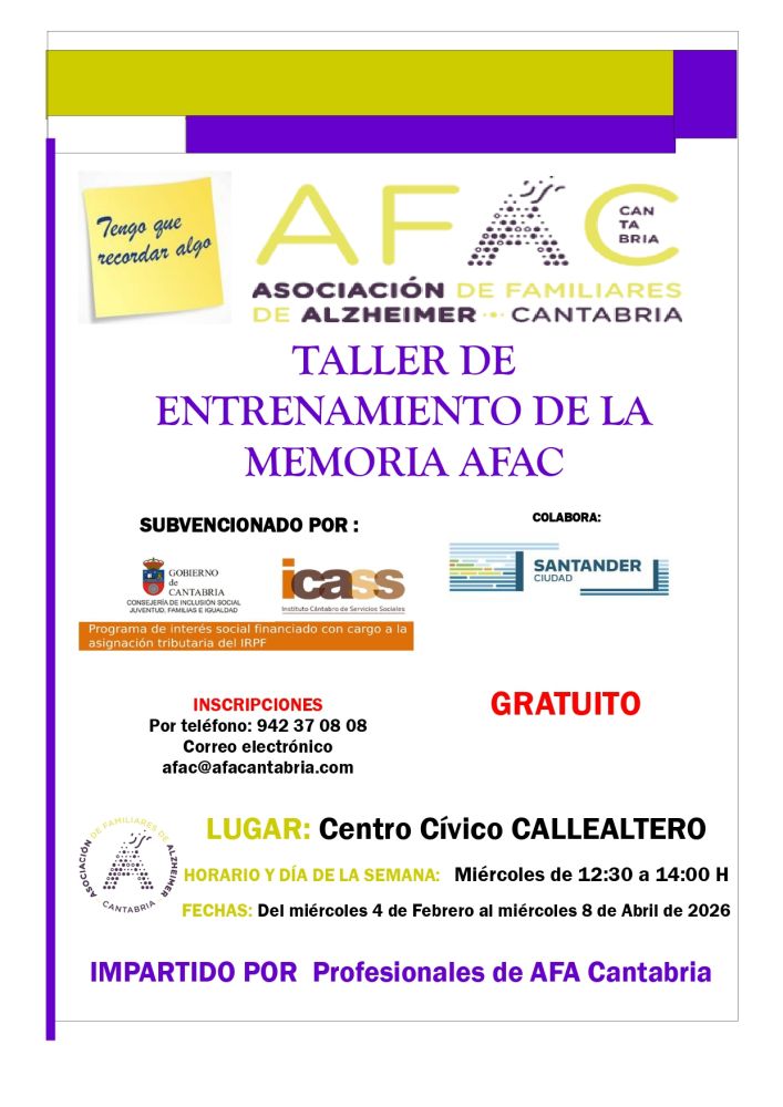 AFA Cantabria no descansa y está continuamente desarrollando nuevas actividades, eventos, talleres y charlas tanto para los enfermos de Alzheimer como para sus familiares. Os dejamos algunas muestras a continuación: